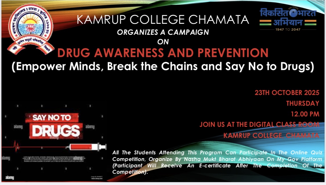 Kamrup College,Chamata,under the aegis of NSS,KCC observed the International day against Drug Abuse & Lllicit Trafficking and took the pledge against drugs on 26/6/2025