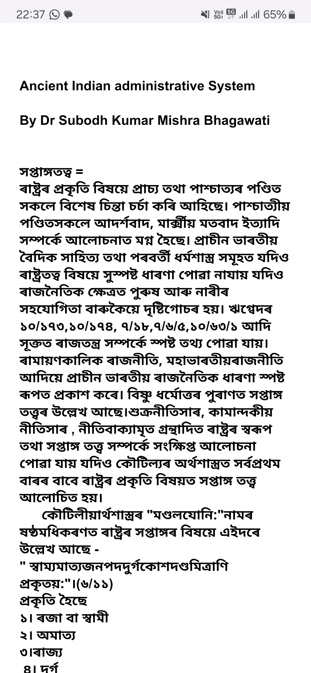 Dr. Subodh Kumar Mishra Bhagawati | TDC 3RD SEM ARTS | SANSKRIT | Ancient administrative system | 2024-2025 | PUBLIC | View File |